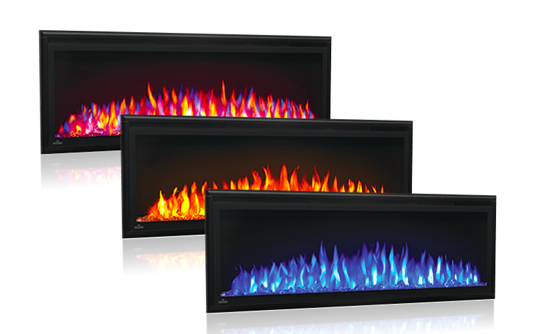 Crystal clear cube ember bed accents the flame. Feature the option of both blue or orange flame, or a combination of both (or equivalent) when you book your basement remodel today.
